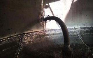 某焦化廠有兩臺(tái)噴淋式硫銨飽和器,因?yàn)榱蜾@飽和器是制取硫酸銨的主體設(shè)備所以較為重要,設(shè)備出現(xiàn)滲漏母液的現(xiàn)象后,企業(yè)方一直采取焊接的方式進(jìn)行硫銨飽和器腐蝕滲漏治理,但是隨著設(shè)備的運(yùn)轉(zhuǎn)設(shè)備內(nèi)部的焊縫不斷地腐蝕,漏點(diǎn)開(kāi)始增多直至設(shè)備整體都出現(xiàn)漏點(diǎn),中部環(huán)形焊縫脫層。